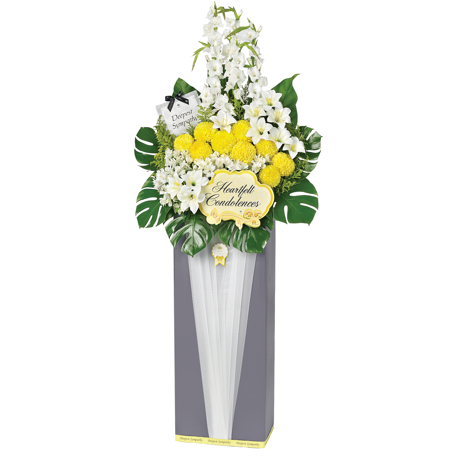 • Express your deepest sympathy with a tranquil floral tribute evoking a sense of calming peace.