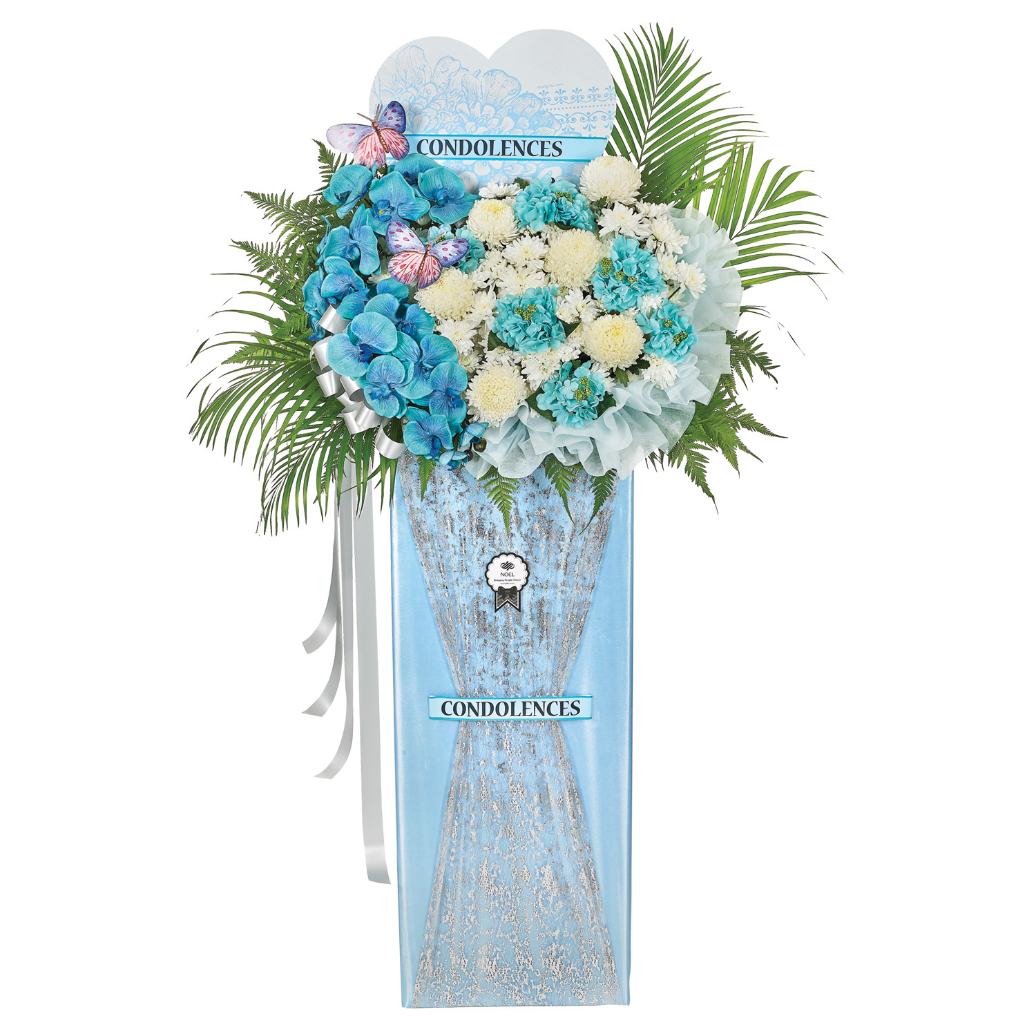 • Condolence floral stand with fresh and artificial flowers.