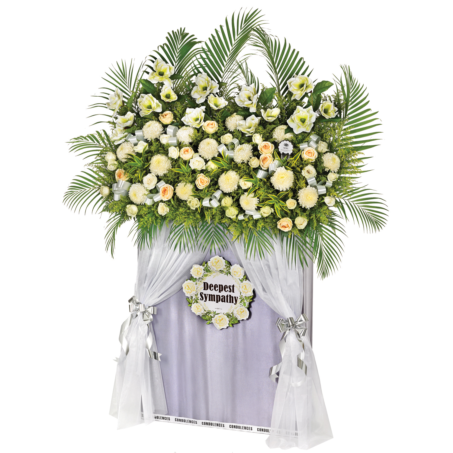 • Condolence floral stand with fresh and artificial flowers.