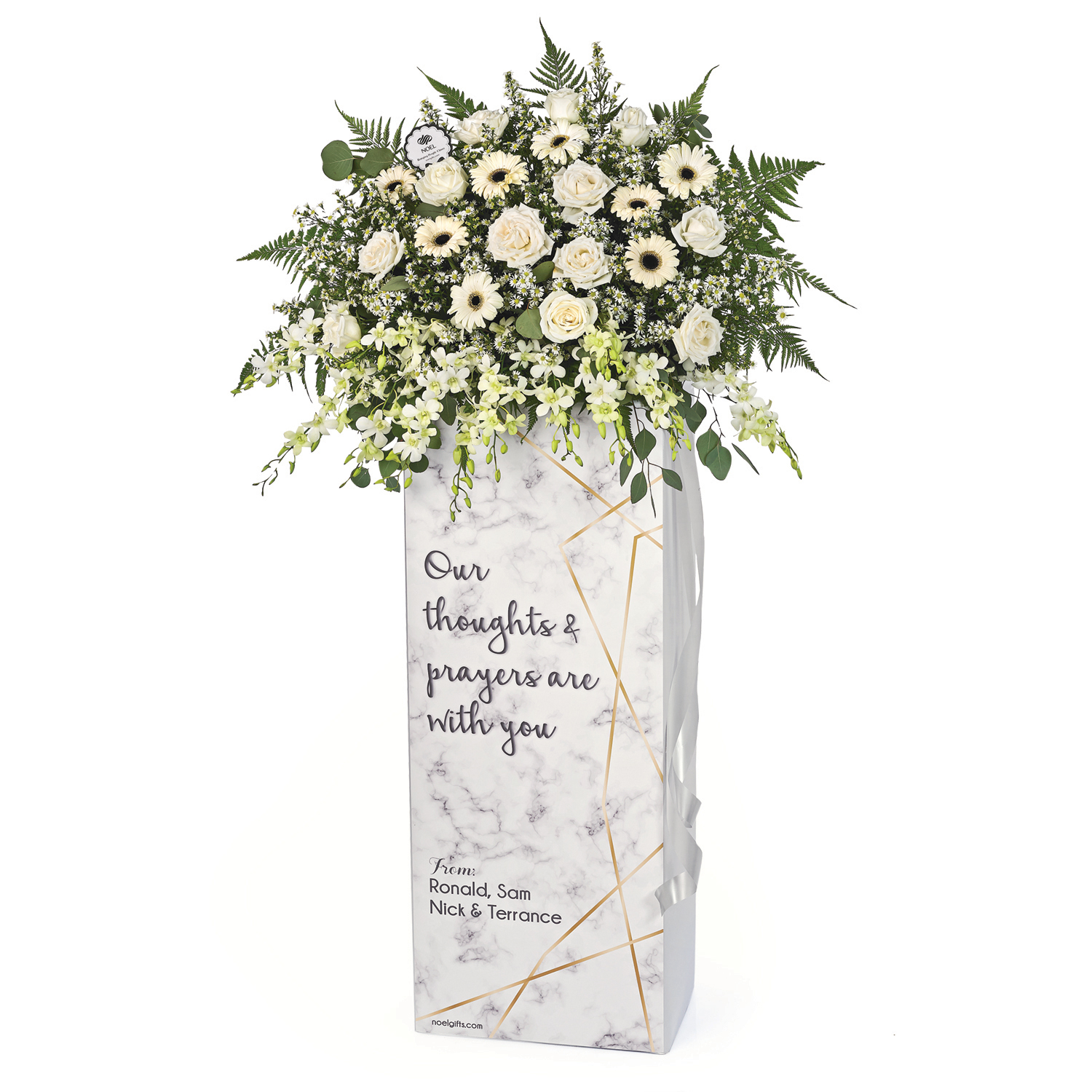 • Message on box stand: "Our thoughts & prayers are with you"
