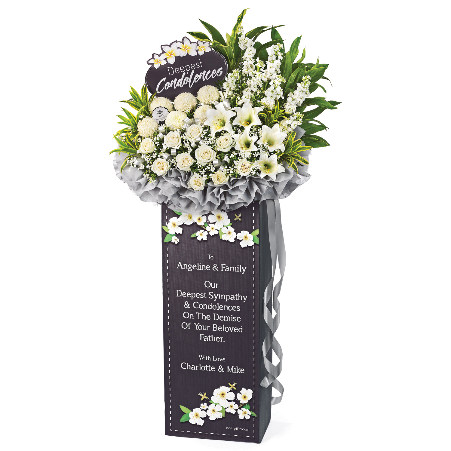 • Personalised Condolence Stands with fresh flowers.