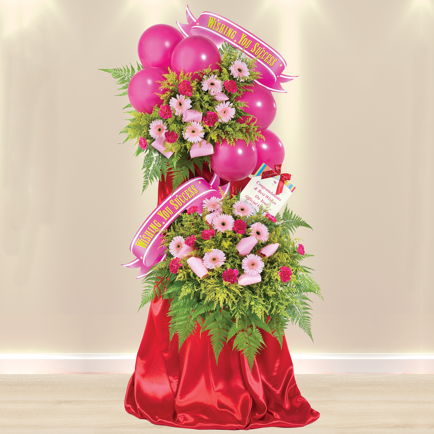 • Convey your wishes of success with a pleasing flower stand fit for the very best!