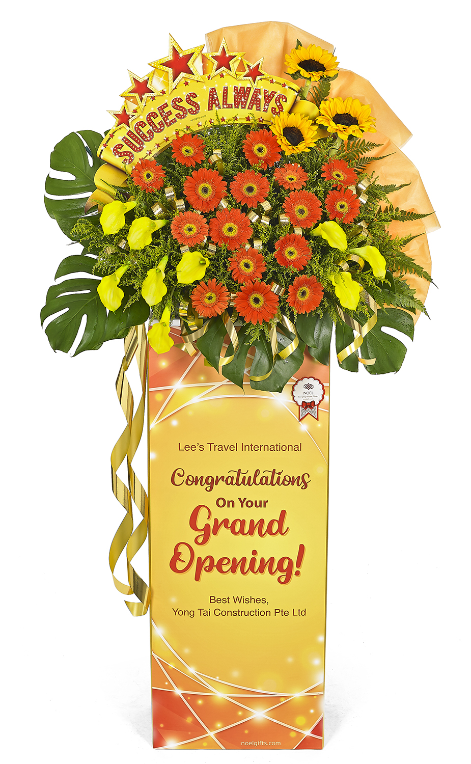 • Send forth wishes of stellar success with this awe-inspiring grand opening flower stand, and personalise for that unique touch!