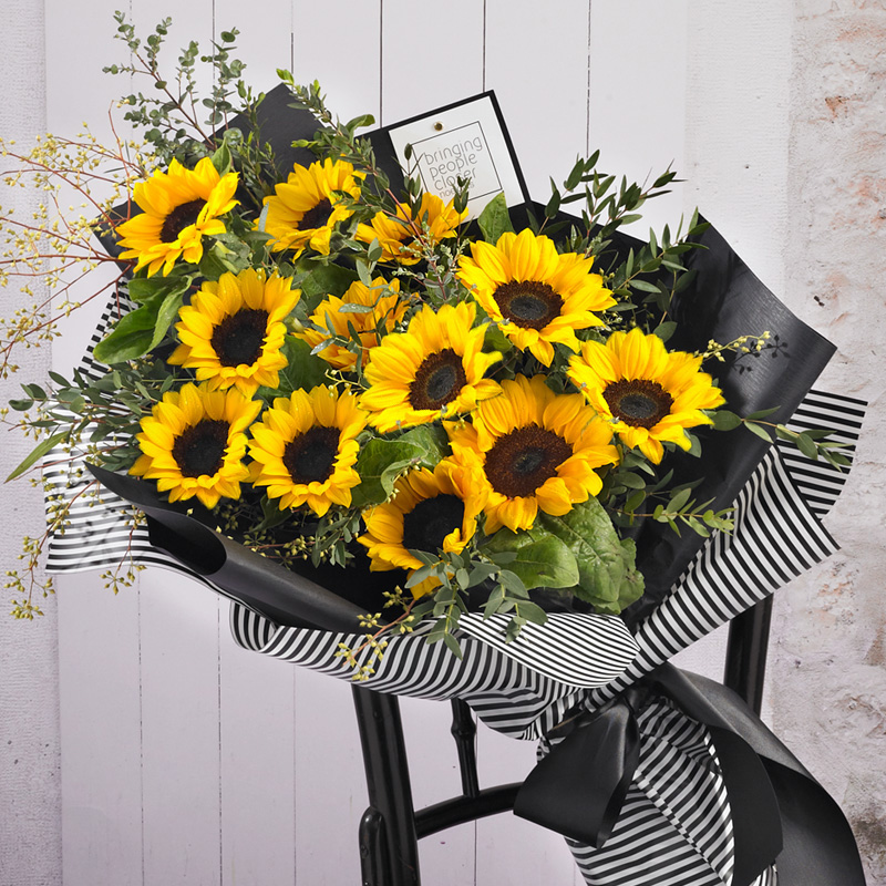 • Bouquet consists of 12 Sunflowers , accompanied by Eucalyptus Mini and Mini Fruits flower.