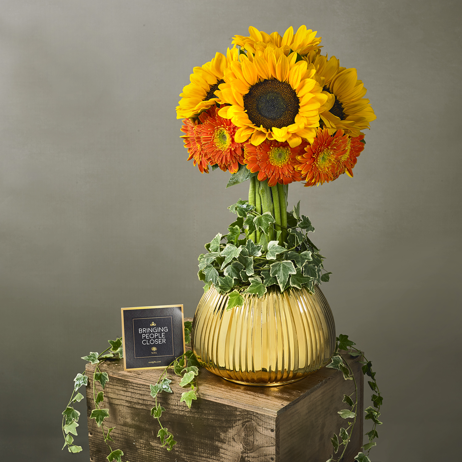 • Send friends or loved ones a warm embrace with sunlit flowers in a golden vase.
