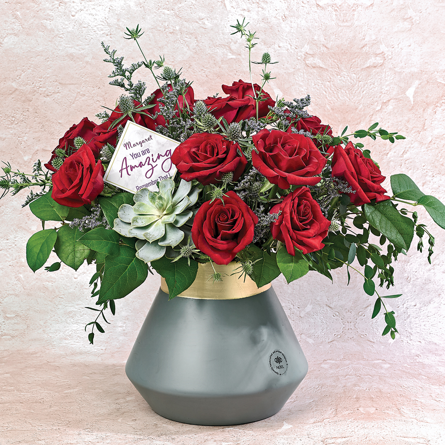 • Admire darling roses in their full glory with this splendid arrangement skilfully put together.