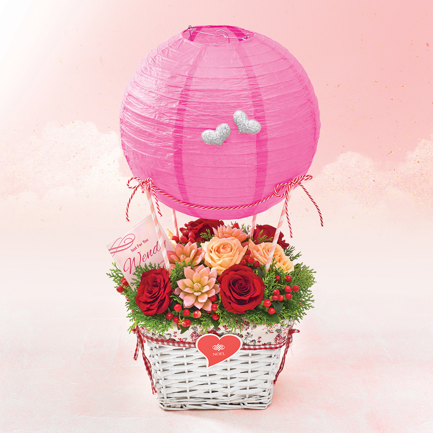 • Love is in the air! Take her up to cloud nine with this lovely gift crafted to resemble a hot air balloon!