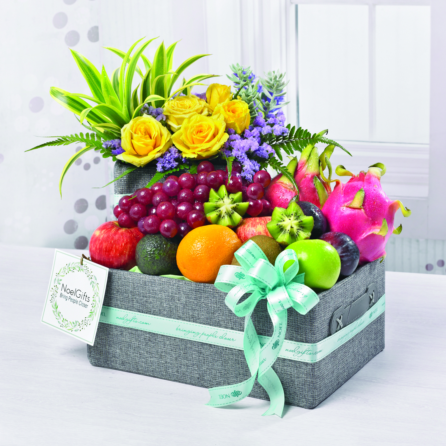 • Consists of Seasonal Fresh Fruits and Flowers.