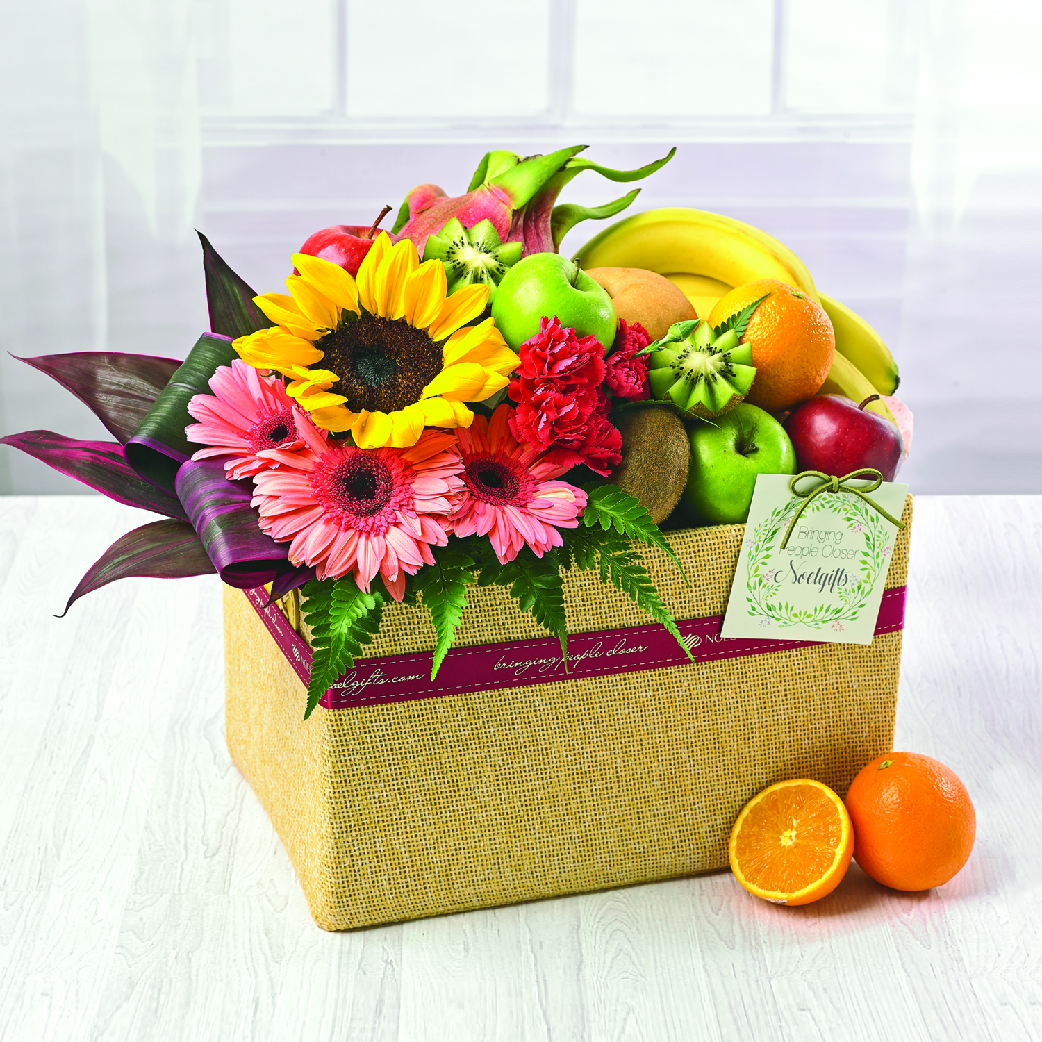 • Send treasured recipients a gift of juicy goodness, along with a marvellous floral arrangement pleasing to the eye.