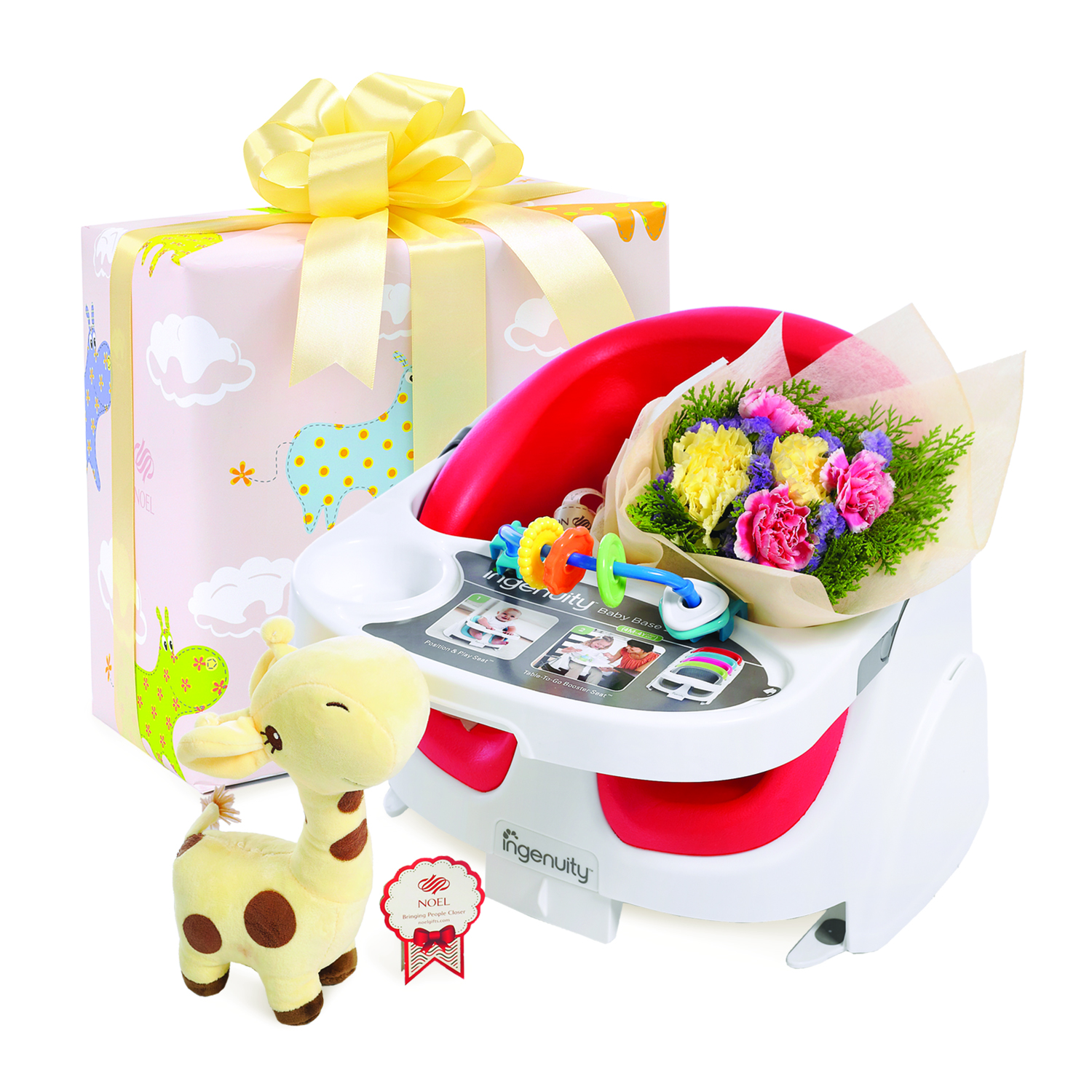 • A sturdy yet comfy booster seat perfect for indoor playtimes or mealtimes, with a cuddly friend for extra company. The Ingenuity Baby Base 2-in-1 Booster Seat easily attaches to dining chairs so your baby can sit up higher and see more during family dinners. This portable baby feeding seat works just as well sitting with you at the table or as a floor seat during playtime. The removable tray gives your baby her own perfectly sized table, so snacks or toys are easily within reach. When not in use, the tray conveniently tucks away right underneath the booster seat itself. As your baby grows, you can remove the foam seat insert and convert the baby booster into a toddler seat.