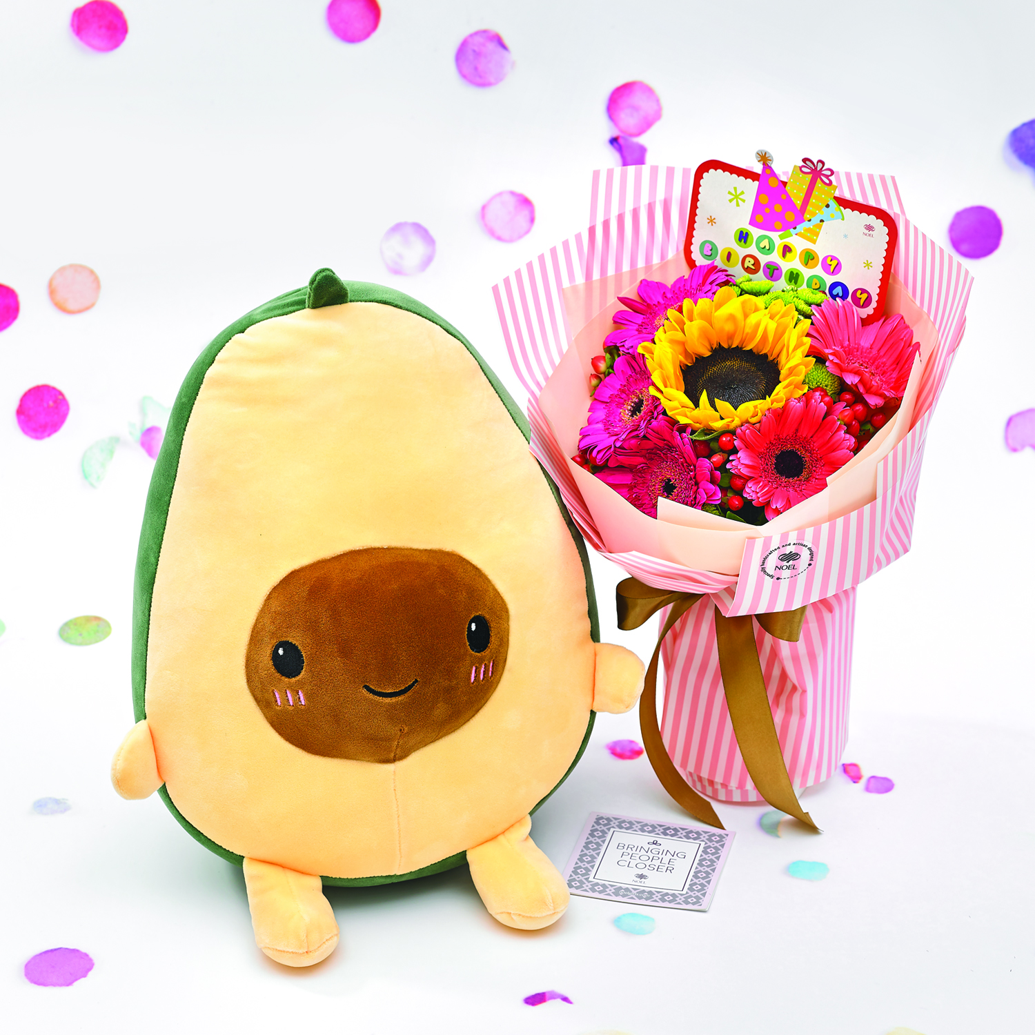 • This cute avocado (Height: 40cm) would love to join in the celebration and cuddle up with your loved one.