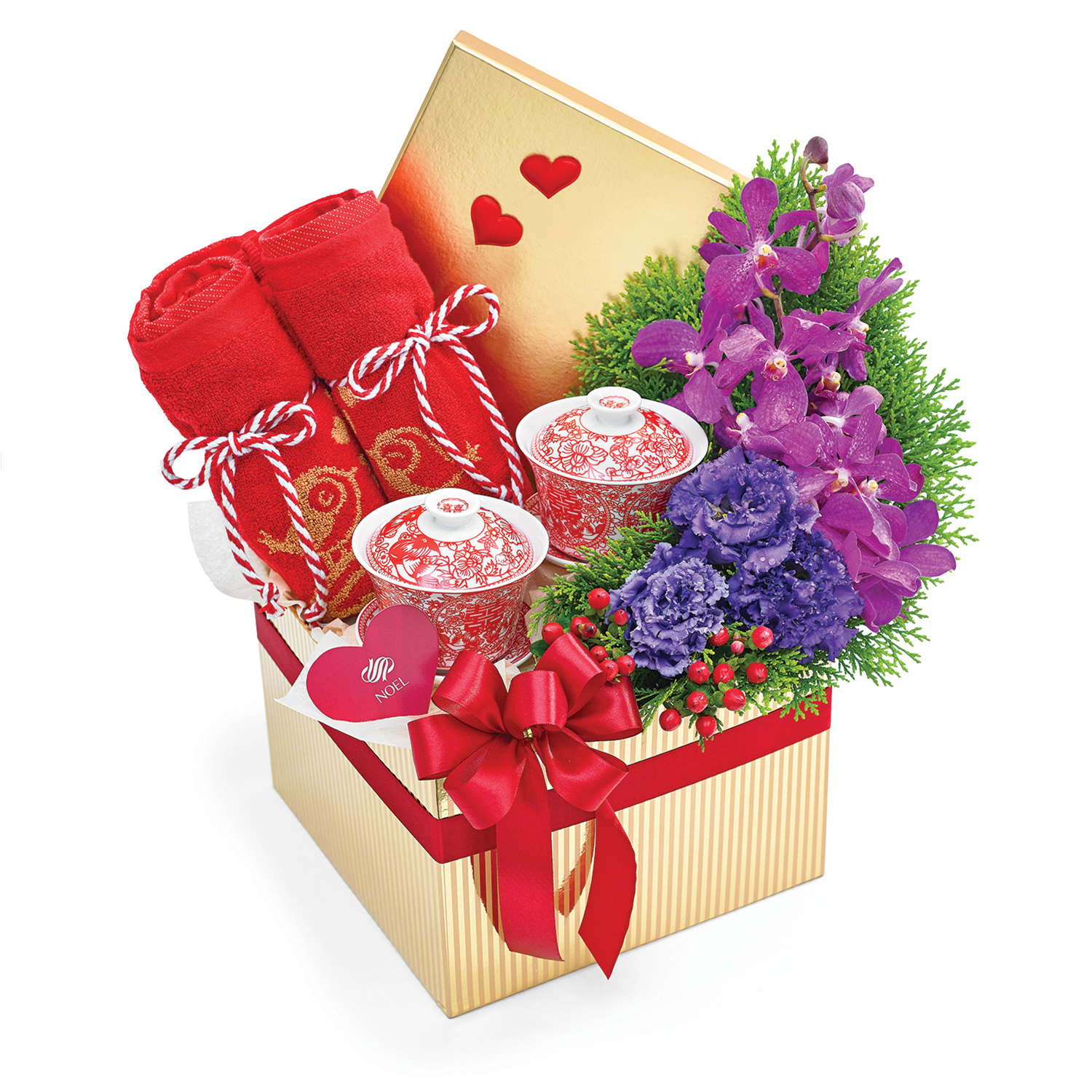 • Send your blessings to the newlyweds with a set of traditional tea cup set and a pair of adorable couple towels.