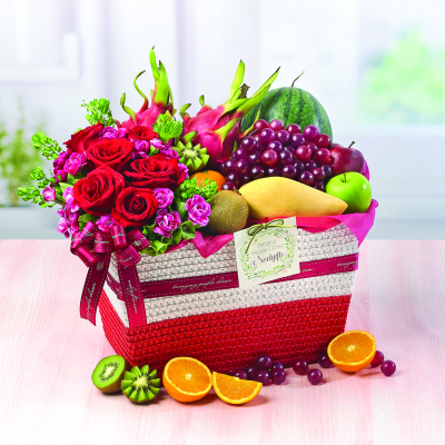 Consists of Seasonal Fresh Fruits and Flowers.