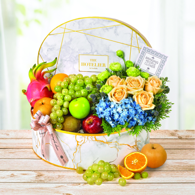 Consists of Seasonal Fresh Fruits and Flowers.
