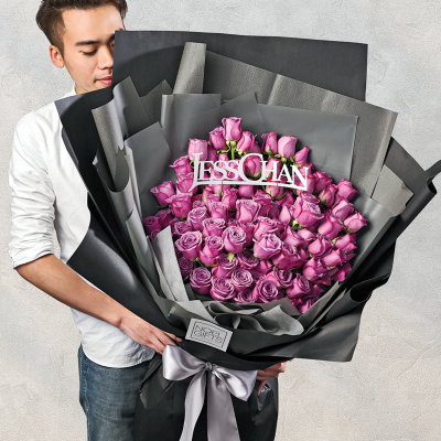 Bouquet consists of 99 Stalks Purple Roses.