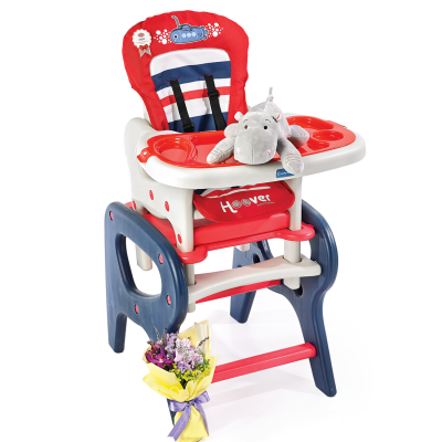 Hooverâ„¢ High Chair easily converts back and forth from a fully-featured baby feeding station to a separate play table and chair for your toddler and preschooler! Seat includes a five-point harness system with one-handed, quick release buckle. Simply press the large button in the centre of the harness and both shoulder and waist belts release. Removable, washable seat pad.