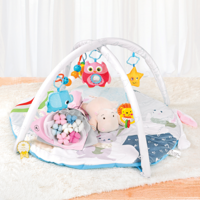 Play Mat comes in assorted designs (90 cm x 75 cm) includes 5 hanging toys, suitable for babies 6 months and above.