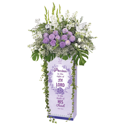 • Condolence stand with fresh flowers.