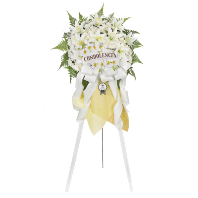 Let the bereaved know that they are in your prayers with a comforting condolence wreath.