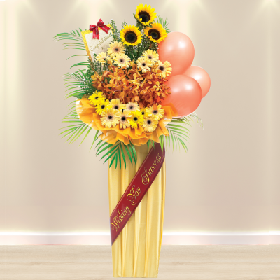 Celebrate the golden times with a glorious congratulatory opening flower stand!