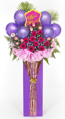 Purple, pink and a little dazzle. Send your best wishes with this attractive flower stand!