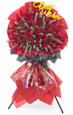 Congratulate your recipient with an impressive floral stand dressed in extravagant red!