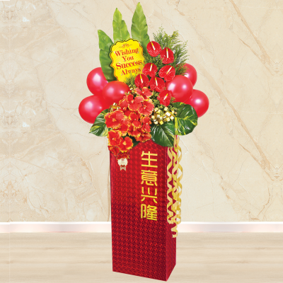 Welcome success always with this opening flower stand decked in auspicious red with glorious gold details.